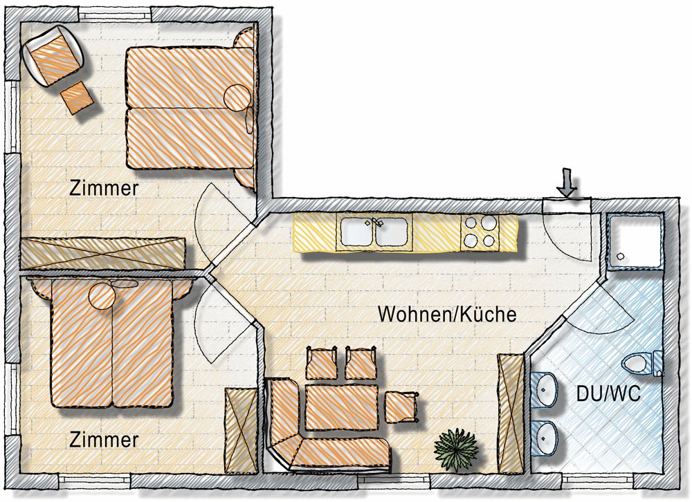 Bei 4 Personen im Apartment Mitte und Maharadscha wird ein zusätzliches Doppelzimmer gebucht. Für Kinder steht ein eingebautes Zusatzbett bereit. Haben Sie ein Baby oder Kleinkind, stellen wir ihm auf Wunsch gerne ein Kinderbettchen zur Verfügung.